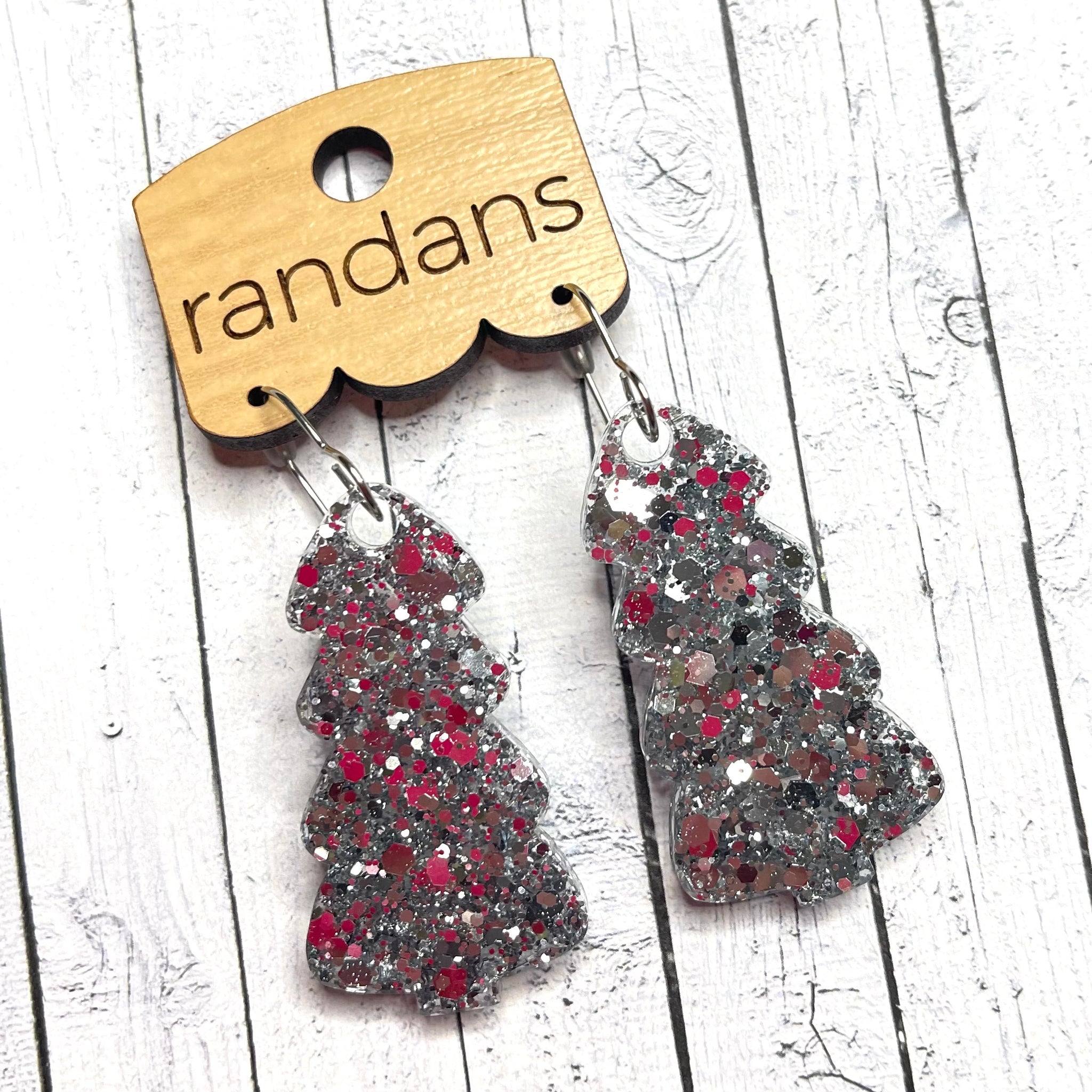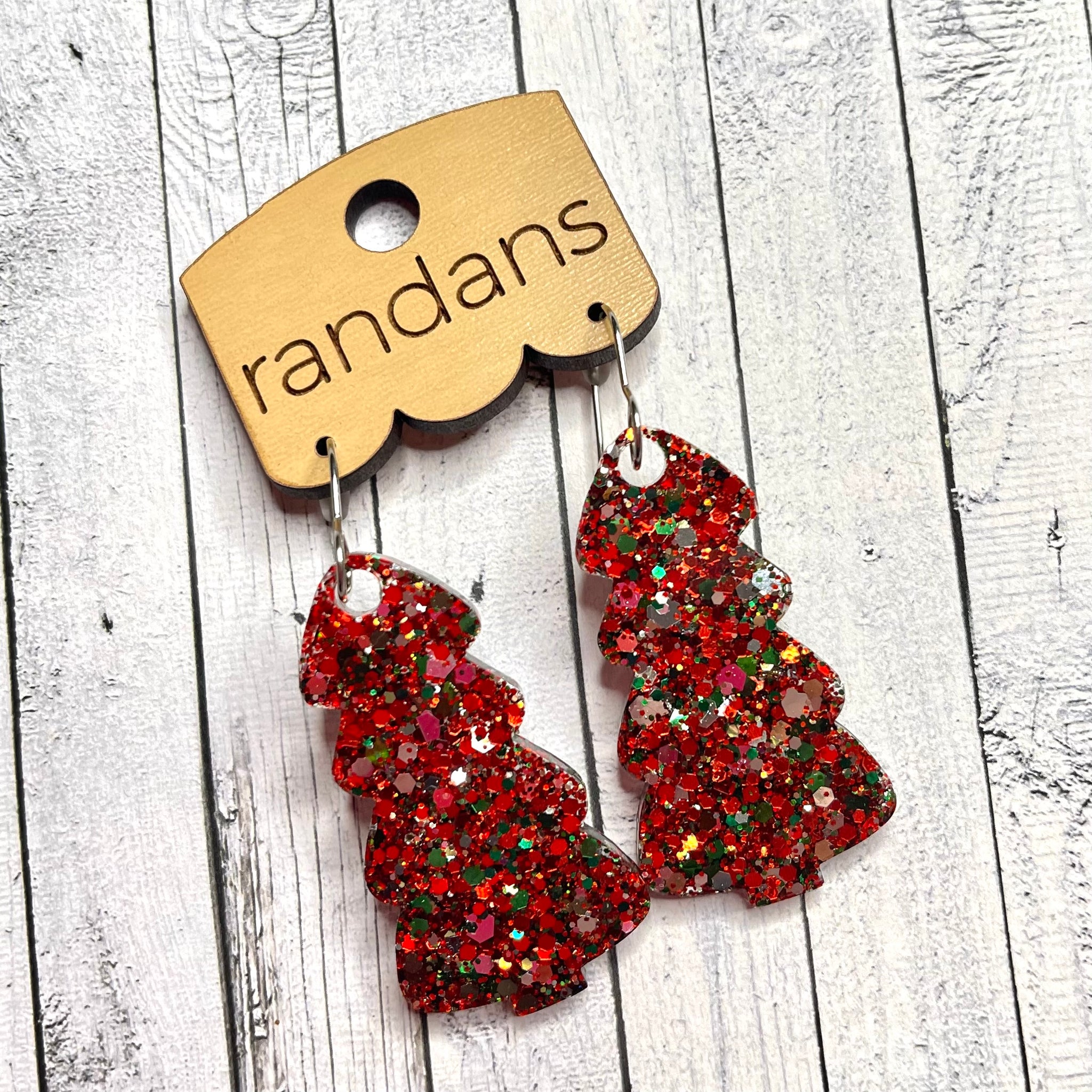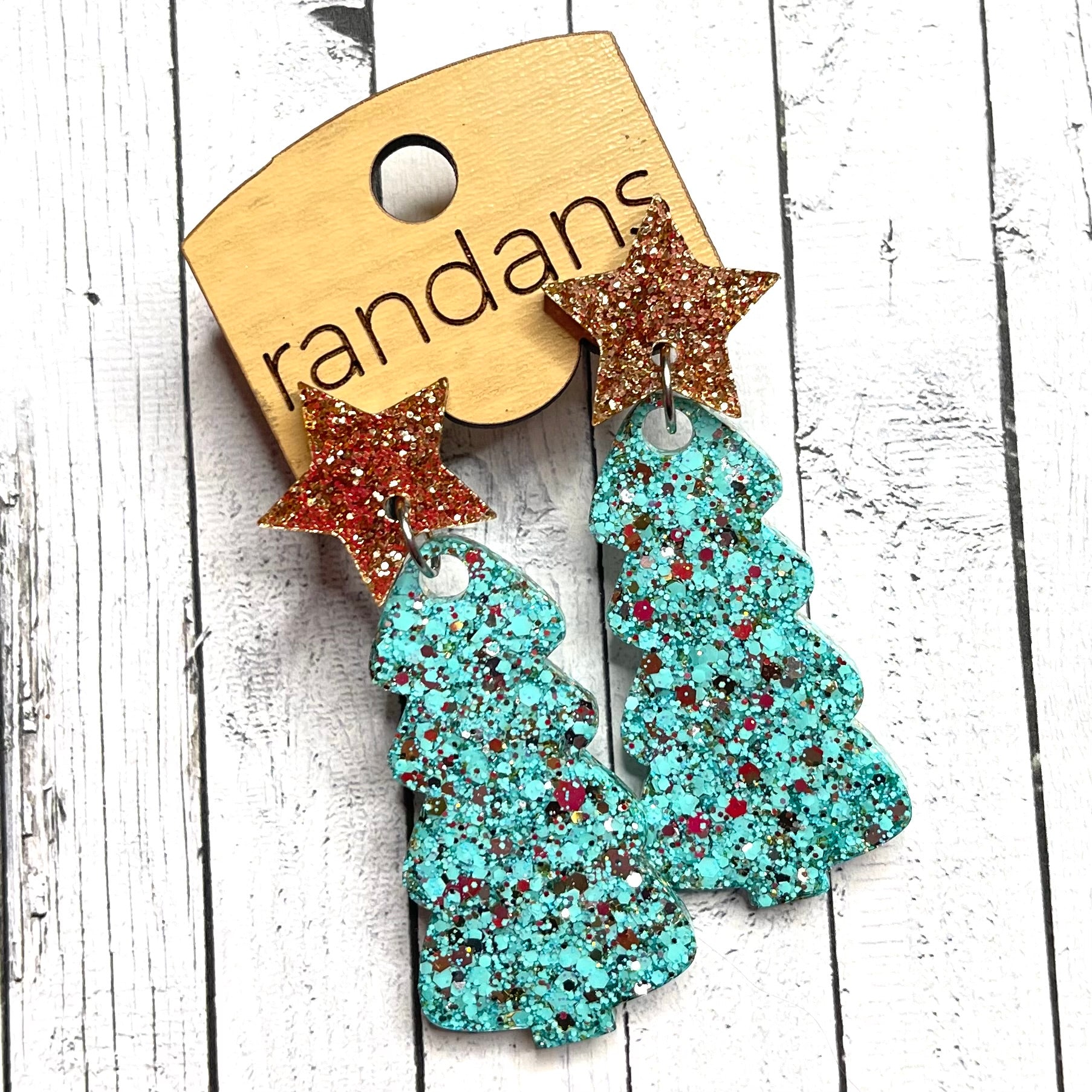Randans resin/acrylic/wood dangle earrings- glitter christmas tree